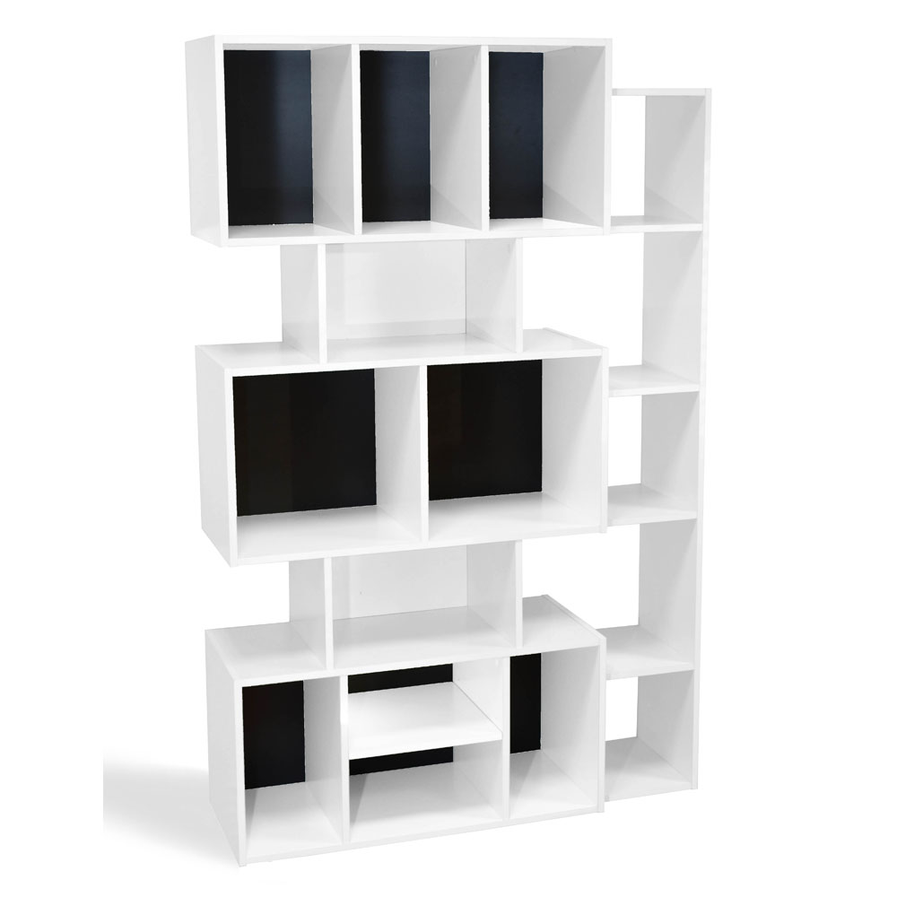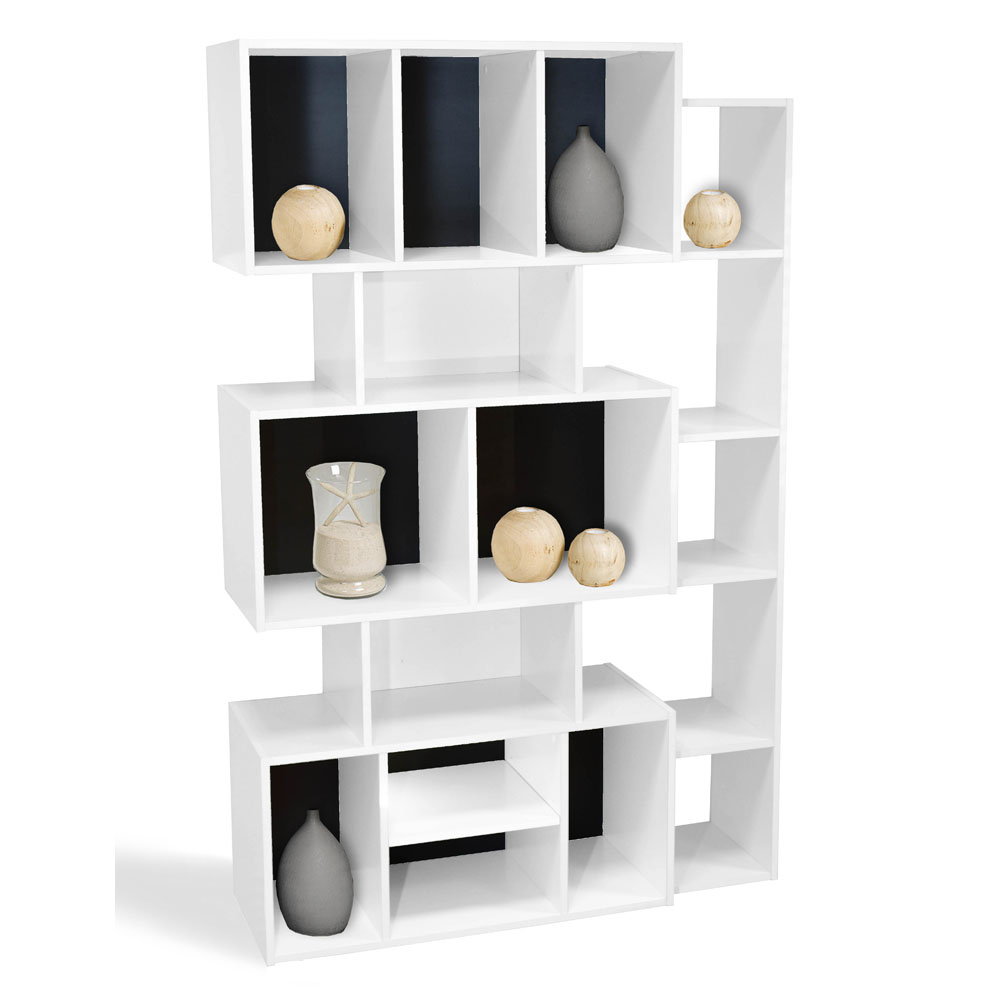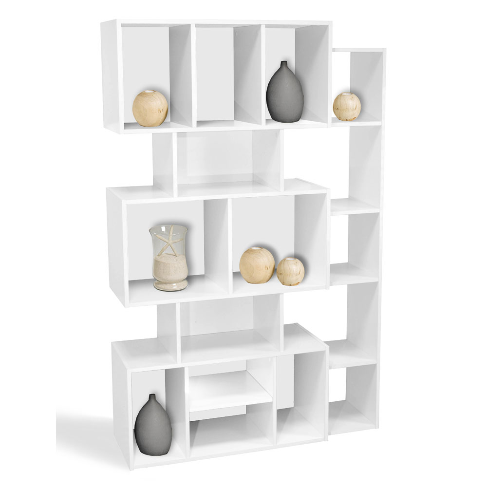 Λευκή λακαριστή ραφιέρα από πιστοποιημένη μοριοσανίδα με ιδιαίτερο σχεδιασμό που θα αναδείξει το χώρο και τα αγαπημένα σας αντικείμενα. Το πάνελ της πλάτης μπορεί να είναι λευκό ή μαύρο. ΔΙΑΣΤΑΣΕΙΣ:Μ = 105.1 cm, Υ = 165.3 cm, Π = 34 cm