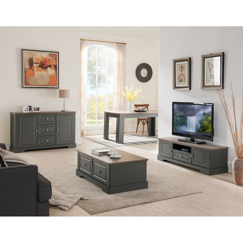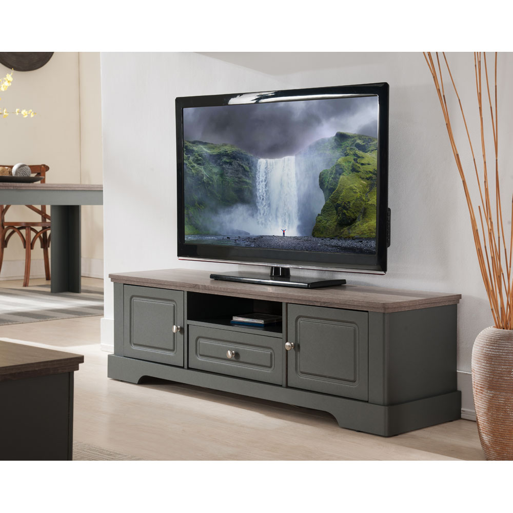 Κομψό έπιπλο τηλεόρασης, γαλλικής προέλευσης που συνδυάζει μοναδικά την κλασσική κομψότητα με το μοντέρνο ύφος και τα εξαιρετικής ποιότητας υλικά. Περιλαμβάνει ανοιχτή επιφάνεια για την τοποθέτηση της τηλεόρασης και των διακοσμητικών σας, ράφι για dvd player, blu-ray player, playstation και 3 κλειστούς χώρους για να αποθηκεύετε τα CDs, DVDs και ό,τι άλλο χρειάζεστε. ΔΙΑΣΤΑΣΕΙΣ: Μ = 138.8 cm, Υ = 41.5 cm, Π = 39 cm