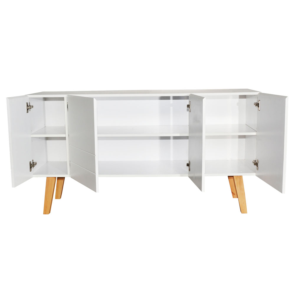 Λευκή κομότα λακαριστή απο πιστοποιημένη μοριοσανίδα 15mm για τους λάτρεις της κομψότητας. Τα ποδαράκια είναι από μασίφ πεύκο με απόλυτη σταθερότητα. Οι 4 πόρτες κρύβουν μεγάλο αποθηκευτικό χώρο για να προστατεύονται τα αγαπημένα σας αντικείμενα. ΔΙΑΣΤΑΣΕΙΣ: Μ = 140 cm, Υ = 75 cm, Π = 45 cm