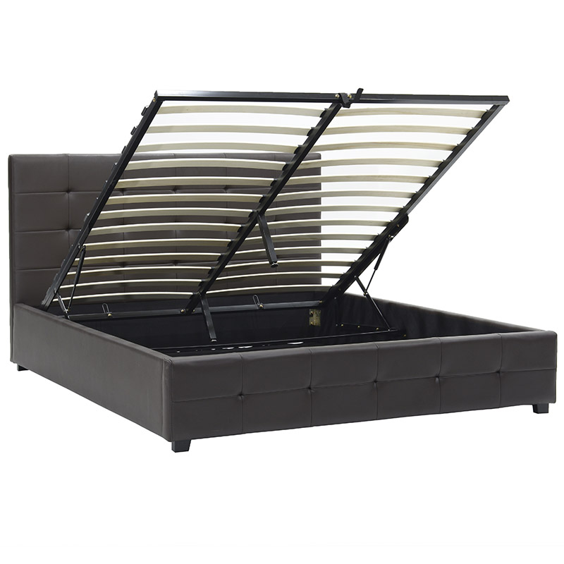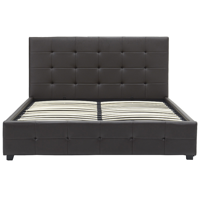 Κρεβάτι Roi διπλό 160x200 τεχνόδερμα PU χρώμα σκούρο καφέ ματ+αποθηκευτικό χώρο με ανατομικές τάβλες