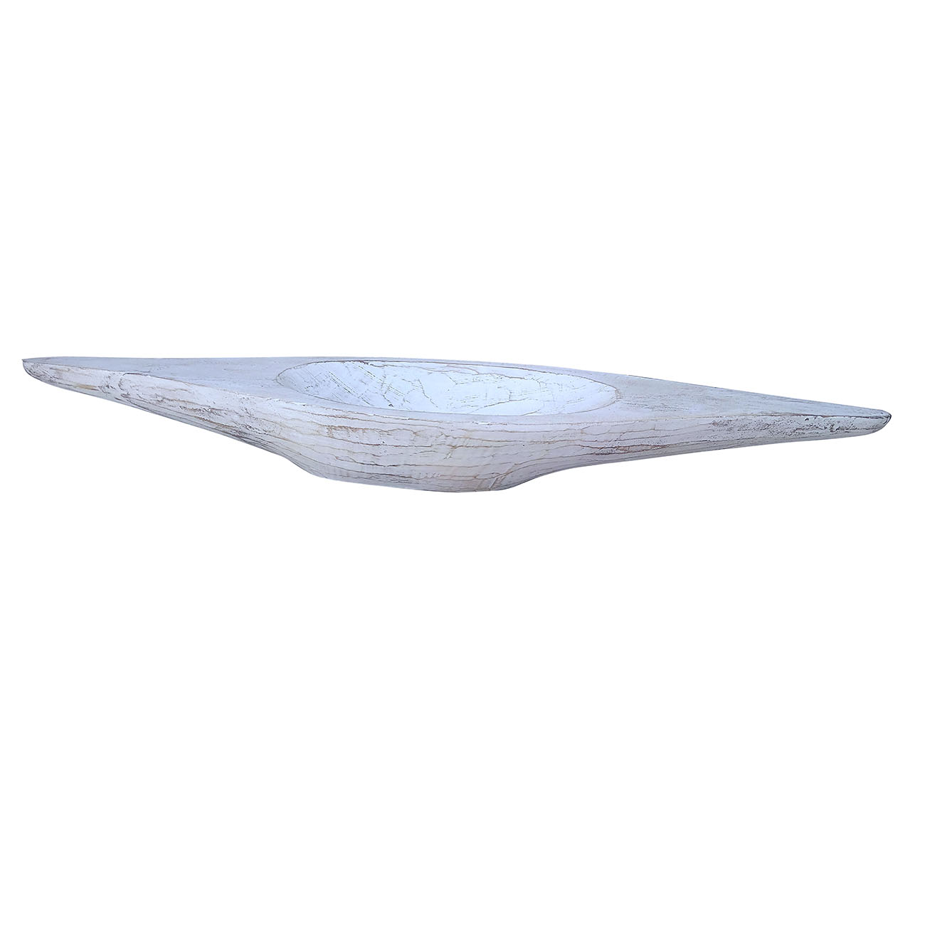Διακοσμητικό Ξύλινο Μπώλ, 70*20 εκ, Χρώμα λευκό αντικέ.