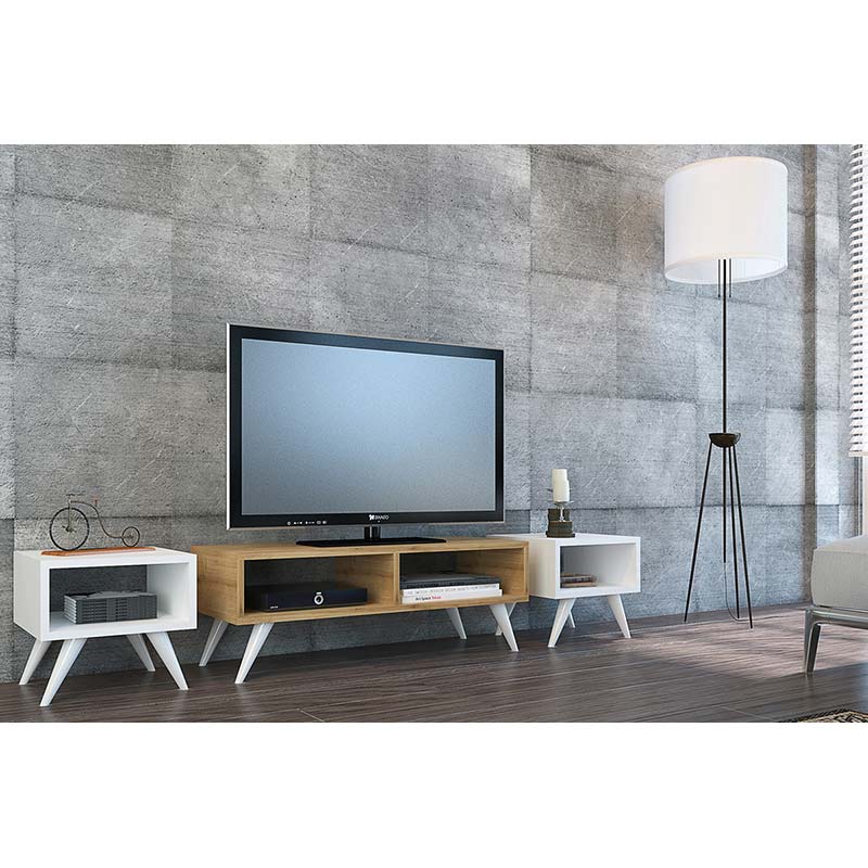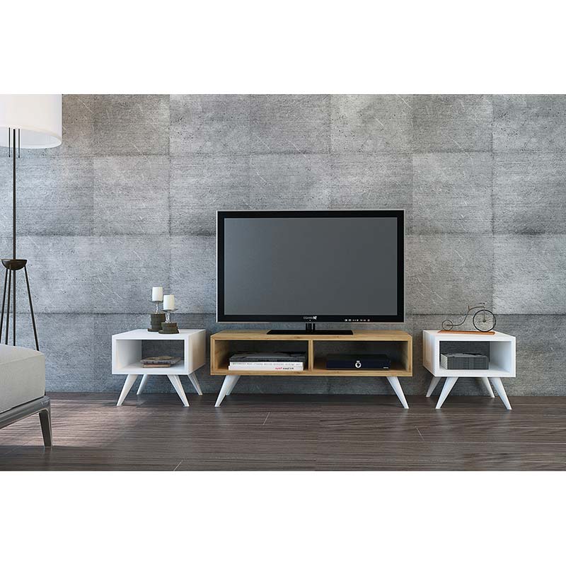 Σετ έπιπλο τηλεόρασης Vinca TV λευκό-οξιά